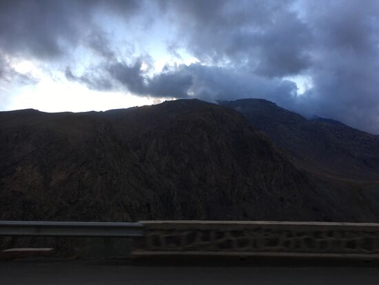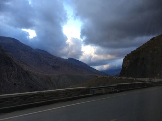 Als es nahezu dunkel war, fuhren wir auf der serpentinenreichen Strecke in eine Wolkenfront hinein. Es war kaum die Hand mehr vor Augen zu sehen, die Berge zu beiden Seiten nicht mehr zu erkennen. Da kann einem schon ein wenig mulmig werden. Doch unser Fahrer scheint ein Meister dieser Strecke zu sein.