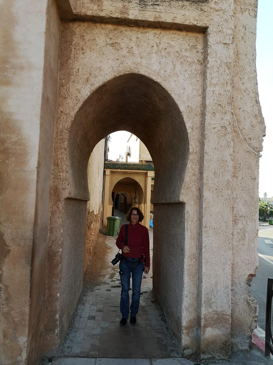 Dann fuhren wir ein kurzes Stück weiter Richtung Königstadt. Dort stiegen wir aus und schlenderten zu Fuß weiter. Am Straßenrand sahen wir alte Männer, die einer Arbeit nachgingen. Eine riesige Matratze wurde von einem von ihnen mit Kunstfasern gestopft. Die anderen saßen um ihn herum, erzählten und lachten. Wir durchschritten die Tore und befanden uns in der Königsstadt. Unser Spaziergang dauerte nicht lang. Nach 20 Minuten waren wir am Bab el Mansour angekommen, diesem prächtigen Tor, wo wir bereits gestern waren. Hier verabschiedeten wir uns von unserem lokalen Reiseführer und um 10:00 Uhr saßen alle im Bus, der nun mit uns in ein Industriegebiet fuhr, vorbei an einem im Jahre 1912 gegründeten Pferdegestüt, das heute 230 Pferde hält und Pferdezuchtbetrieb betreibt.