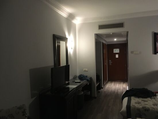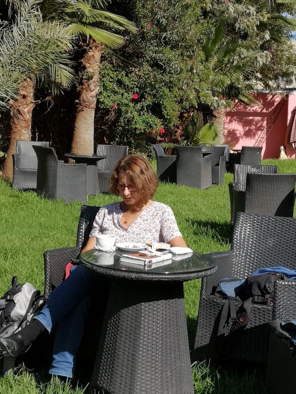 Andrea war schon weit vor dem Weckerklingeln von Hühnergegacker und vor allem vom sehr lauten Rufen des Muezzin erwacht. Ich hatte sie gestern gebeten, mich erst um halb acht zu wecken, was sie auch tat. Ganz leicht war es aber nicht. Dennoch stieg ich letztlich so auf, dass noch ein Blick vom Balkon auf den schönen Vollmond in der Morgendämmerung möglich war und ich kurz nach 08:00 Uhr beim Frühstück saß. Andrea und ich haben zwar nicht gar nichts gegessen, wie gestern Abend noch gemeint, doch es hielt sich in Grenzen.
