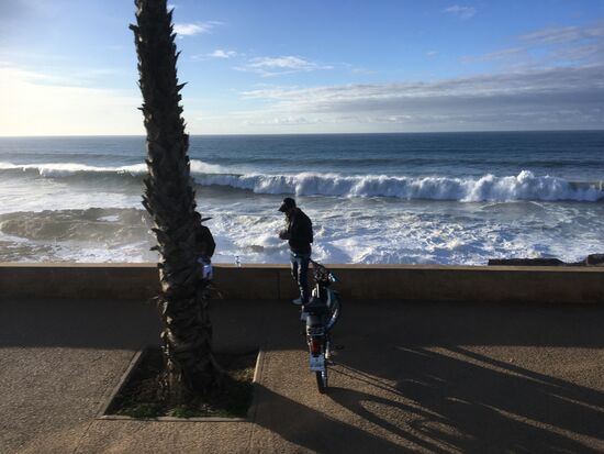Nun lag die Fahrt nach Casablanca vor uns. Etwa 1 3/4 Stunden könnte sie dauern. Wir warfen letzte Blicke auf Rabat und den Fluss Wadi Bou Regreg, der direkt in den Atlantik fließt. Fischerboote, Jetski, am Ufer entlang flanierende Menschen und an der Mündung zum Ozean eine enorme Brandung sind das, was ich als Bild mitnehme. Eine ganze Weile führte die Straße direkt am Atlantik vorbei. Die Wellen waren mächtig und ich fühlte mich sofort an Nazaré in Portugal erinnert.