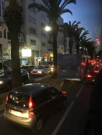 Casablanca erreichten wir kurz vor 19:00 Uhr, bezogen unser Zimmer und gönnten uns zunächst einmal auf dem Balkon einen Schluck unseres marokkanischen Rotweins. Plötzlich entdeckte Andrea in ihrer Blickrichtung den buttergelb aufgehenden Mond. Er war riesig! Und wenig später hatten wir einen super Vollmond, der natürlich umgehend mit den Kameras festgehalten wurde. Wie gut, dass wir nicht gleich zum Abendessen gestürzt waren. Beim Abendessen habe ich mich dann bei all den Leckereien doch mal wie der nicht so zurückgehalten, wie ich es wollte. Auch Andrea überlegte, heute Abend ein paar Verdauungstropfen zu nehmen. Aber vielleicht würde ja ein kleiner Spaziergang schon helfen? Also zogen wir in den 17 Grad lauen Abend. Den Atlantik hatten wir uns als Ziel gesetzt. Und ganz ohne Stadtplan, immer schön dem Gehör nach, standen wir kurze Zeit später auf der Strandpromenade. Jetzt bloß nicht an Deutschland denken. Es handelt sich eher um einen Boulevard an einer der Hauptstraßen. Egal. Vergebens suchten wir nach einer Möglichkeit, ans Wasser zu kommen. Überall Bars und Restaurants oder auch Clubs, die ihren Mitgliedern Zutritt zum Strand gewähren. Wir sahen viele Swimmingpools am Strand und wir vermuten, dass ein bad im Ozean hier einfach nicht möglich ist. Da dachten wir, es gibt ja auch hier in Casablanca bestimmt auch eine Medina. Dann gehen wir eben dorthin. Wir sprachen ein junges Pärchen darauf an und man wies uns den Weg. Nach der Entfernung befragt, hörten wir, die Altstadt sei etwa 6 bis 7 km entfernt. Hm. Das war uns dann doch zu weit zu laufen. Also schlugen wir die Gegenrichtung ein und fanden letztlich tatsächlich Punkte, an denen man ans Wasser kam. Besonders verheißungsvoll war es in der Dunkelheit da unten jedoch nicht. Herrenlos umherstreunende Hunde machten die Angelegenheit auch nicht besser. Schließlich kehrten wir um.