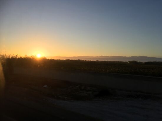 Unsere Fahrt ging in den Sonnenaufgang hinein, vorbei an endlos unbebauten Landschaften. Neben uns erhoben sich majestätisch Gebirgszüge. Merdan sprach von einer Steinwüste, die wir durchfahren werden bis zu unserer Pause nach ca. 2 Stunden. Bis dahin hatte ich also Gelegenheit, ein wenig zu schlafen. Doch auch die Steinwüste hatte für mich ihren Reiz. Etliche Häuser schienen im Bau befindlich. Manche dieser Orte wirkten wie komplette Investruinen und doch waren Menschen hier zu sehen.