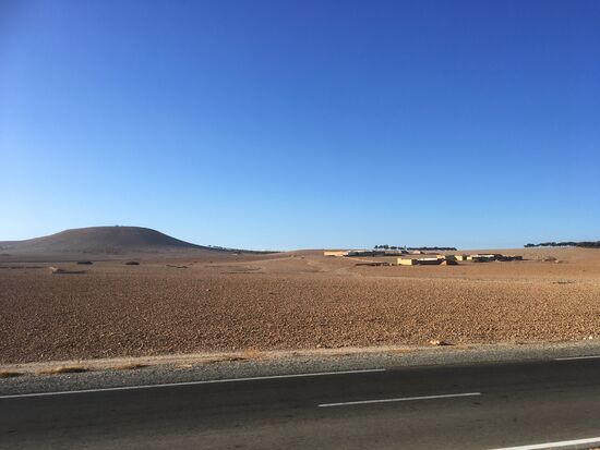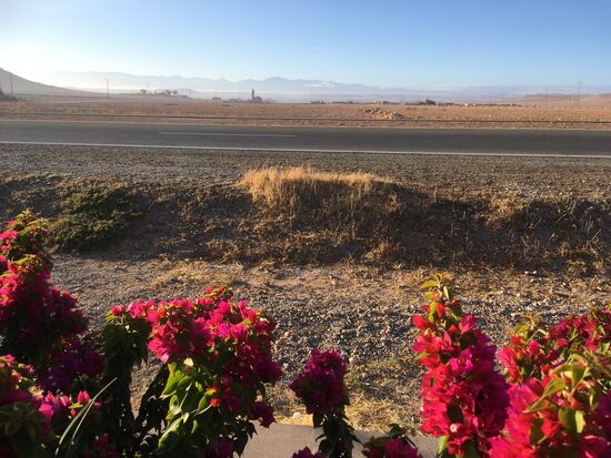 Auf der weiteren Fahrt zurück nach Marrakesh erhoben sich wieder die Gebirgsketten, diesmal schon von der allmählich untergehenden Sonne in schönes Licht getaucht. Auf manchen Bergen haben wir gemeint, Schnee entdeckten haben. Aber den gibt es in dieses Höhenlagen dann wohl doch noch nicht.