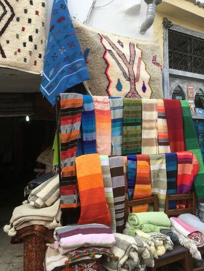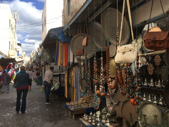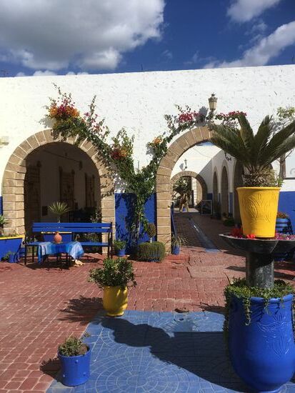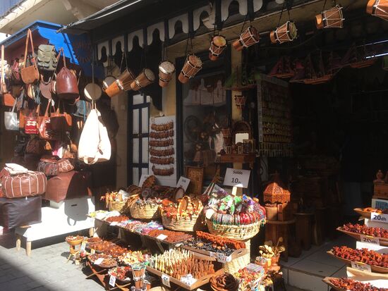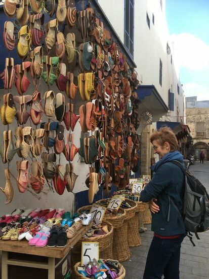 In der Altstadt nahmen wir unser heutiges Mittagessen ein. Wie sollte es in einer Fischereistadt anders sein – wir labten uns an leckerem Fisch. Anschließend bekamen wir 1,5 Stunden Zeit, Essaouira zu erkunden. Ulrike wollte einen silbernen Armreif für sich und ihre Nichte mit nach Hause nehmen. Merdan hatte empfohlen, Silberschmuck nicht auf einem souk zu kaufen. Er würde Imam bitten, sie zu einem entsprechenden Geschäft zu führen. Andrea und ich sowie ein paar andere aus unserer Gruppe schlossen sich an. Und eine weitere Erinnerung an dieses Land ziert nun meinen Hals.
