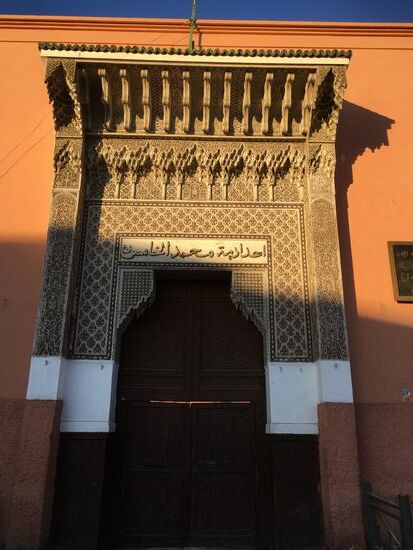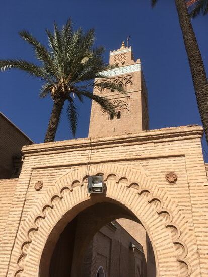 Um 12:00 Uhr trafen wir uns an der Rezeption, zugegebenermaßen war ich erst kurz nach zwölf da, und dann gingen wir die etwa 300 m vor zur Straße. Und weil wir Glück hatten, stand auch schon der Bus Nummer 35 da, der uns dann mit vielen Einheimischen in die Stadt nahm. Wir löhnten unsere 75 Dirham, was etwa 0,70 € entspricht und kamen alsbald an der Koutoubia-Moschee an.