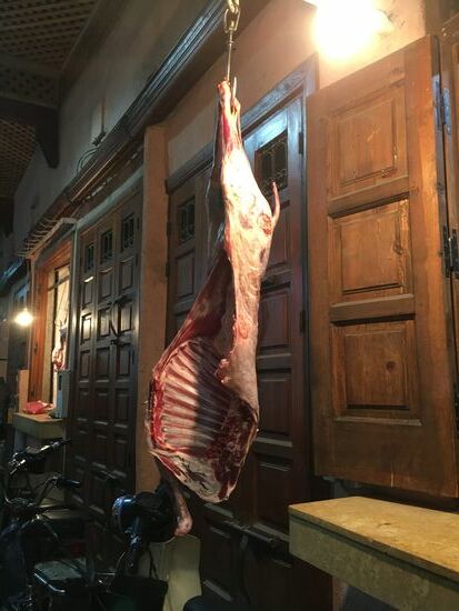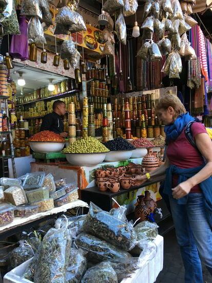 Wir wollten noch unbedingt zu der Apotheke „Rosa Huile“, wo wir neulich mit der Gruppe schon waren, um dort einzukaufen. Doch wie konnte der Weg durch das Labyrinth der Gassen gefunden werden? Kein Problem! Der Verkäufer rief von dem gegenüberliegenden Geschäftes einen jungen Mann. Der sollte uns hinführen. Das tat er auch. Schnellen Schrittes eilte er voraus, wir artig hinterher. Etwa 5 Minuten später hatten wir unser Ziel erreicht. Ohne ihn hätten wir vermutlich eine Stunde gebraucht. Er wollte nicht mal ein Trinkgeld für seine Dienste. Wir trafen auf einen Angestellten und sagten, dass wir etwas kaufen wollten. Er ging mit uns ganz nach oben in einen extra Raum. Da ich mir bei unserem ersten Besuch in dieser Apotheke sämtliche Anwendungen und Preise aufgeschrieben hatte, hatten wir uns schnell entschieden, welche Produkte wir mit nach Hause nehmen wollen. Es sind zwei ordentlich große Tüten geworden. Wir nahmen uns noch Zeit für einen leckeren Pfefferminztee und dann ging es weiter durch die Altstadt.