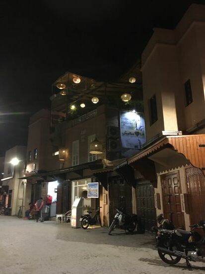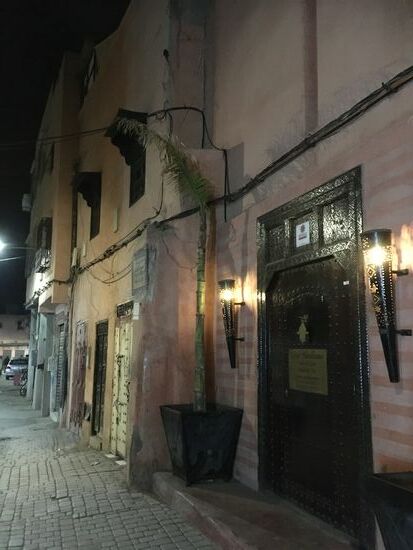 Nun führte uns unser Weg direkt zu Jaouad, mit dem wir zu Beginn unserer heutigen Tour über mögliche Ausflüge gesprochen hatten. Er hatte uns gesagt, er sei bis 21:00 Uhr vor Ort. Um 20:55 Uhr trafen wir bei ihm ein. Doch er hatte noch andere Kunden. Als er mit diesen fertig war und er uns sah, freute er sich, dass wir tatsächlich noch einmal wieder gekommen waren. Inzwischen wussten wir, was wir unternehmen wollten und so buchten wir unsere Ausflüge. Andrea war so lieb und ließ sich darauf ein, morgen mit mir zu den Ouzoud– Wasserfällen zu fahren. Am Mittwoch wird sie ins Ourika-Tal aufbrechen und ich zu einer Tour über den hohen Atlas bis nach Merzouga, wo ich unterwegs eine Nacht in einem Hotel und eine Nacht in einem Zelt in der Wüste schlafen werde. Am Freitag komme ich zurück. Auch mit den Preisen, die Jaouad uns angeboten hat, sind wir sehr zufrieden. Sie sind doch deutlich geringer, als wenn wir hier in unserem Aqua Mirage diese Ausflüge gebucht hätten. Meine Tour kostet beispielsweise im Normalfall 125 €. Ich habe sie für 90 € bekommen. Da mein Bargeld weder in Euro noch in Dirham reichte, um den morgigen Ausflug und meine Tour zu bezahlen, gab sich Jaouad zufrieden mit dem, was ich noch hatte. Da habe ich dann noch mal fünf Euro gespart. Andrea und ich wir sind sehr froh, dass wir dieser All inclusive Anlage entfliehen können.