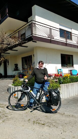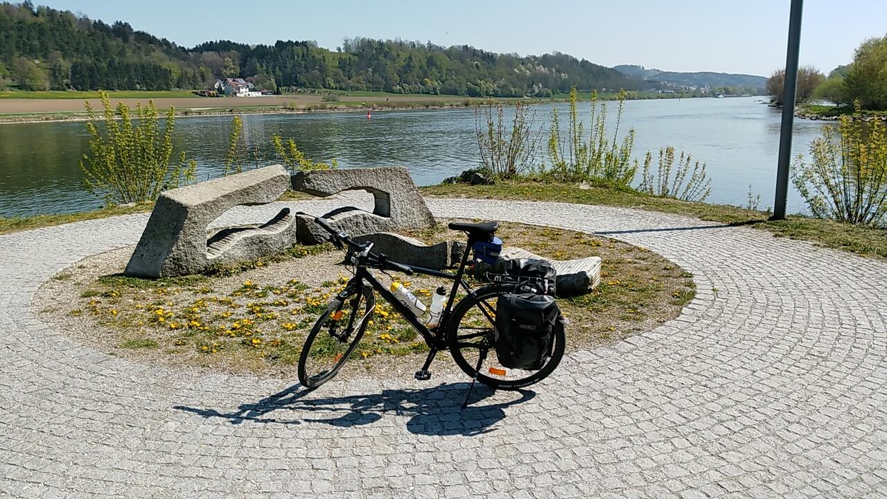 Deshalb auch der Hinweis auf den kleinen Palmbuschen am Steuerrohr des Fahrrads, der nicht nur diese komplette Tour, sondern auch während der zweiten Ferntour dieses Jahres in der zweiten Hälfte im Mai meine Fahrstrecken entlang einer gemeinsamen Tour an Teilen der Enns und der Donau schmückte.