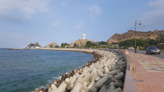 Der Bus fährt die Küste entlang und wir sehen schonmal einige Festungen, Forts und das Wahrzeichen, den riesigen Weihrauchbrenner