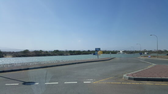 Die Straße ist überschwemmt—hinten sieht man sie weiterführen, aber dazwischen ist leider ein tiefer See...