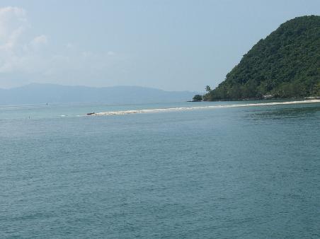 Nach einer Stunde Ueberfahrt mit der Faehre sind wir auf Ko Pha Ngan angekommen. Bei einer Mittagshitze von ueber 40 Grad im Schatten und den Rucksaecken auf unseren verbrannten Schultern haben wir erstmal ein schattiges Lokal aufgesucht. Sara hatte von einem Bekannten eine gute Adresse und eine schoene Bucht empfohlen bekommnen, so dass wir nur noch ein Taxi organisieren mussten. EIn Pickup brachte uns zusammen mit 3 Schweden (hier sind ziemlich viele Schweden unterwegs) durch den Dschungel zu unserer Bucht. Und Dschungel heisst dann auch Dschungel! Die Strasse war ein lehmiger, halb weggespuelter Pfad mit vielen Schlagloechern und so wurde es eine sehr holprige Fahrt. Mitten in der tiefsten Vegetation kam uns dann ein Pickup entgegen. Nichts ungewoehnliches, nur dass die Mitfahrer hinten auf der Ladeflaeche Skimasken ueber ihre Koepfe gezogen hatten. Ihr koennt euch unsere Gesichter (und die der Schweden) nicht vorstellen! Alle sofort ruhig und keiner sagt ein Mucks. Angst steht allen in den Augen. Aber die fuhren dann einfach vorbei. Warum die in der Hitze Skimasken trugen wissen wir heute noch nicht, aber einige Meter weiter wurde der Dschungel brandgerodet, eventuell waren es Waldarbeiter. Auf uns alle hat es aber vorerst einen anderen, gefaehrlicheren Eindruck gemacht.