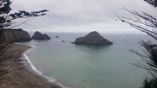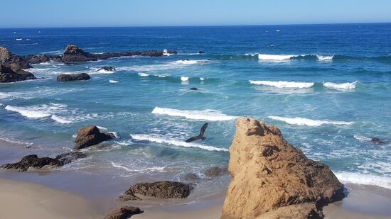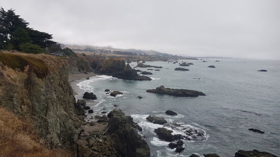 Am nächsten Tag geht es gleich früh zum MacKerricher State Park nördlich von Fort Bragg. Hier gibt es einen schönen Weg an der Steilküste. Noch eindrucksvoller ist der Rundweg am Noyo Point direkt in Fort Bragg. Sogar ein Kalifornischer Kondor zeigt sich im Flug. Seine Flügelspannweite ist über zwei Meter.