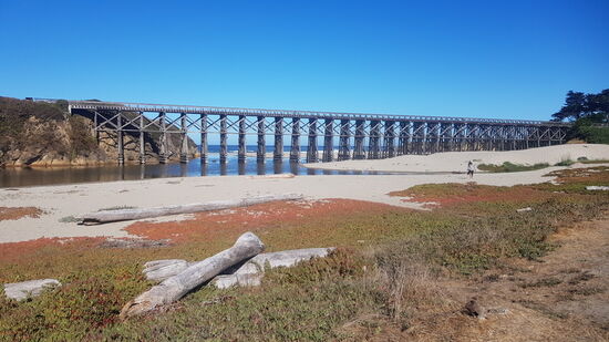 Ein Stadtrundgang in Fort Bragg rundet den Tag ab. Zum Lunch gab es Clam Chowder in der ehemaligen Bahnwerkstatt. Schließlich mache ich noch kurze Rundgänge im Russian Gulch State Park und im Van Damme State Park.