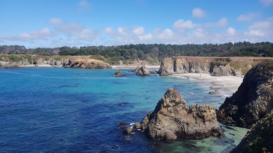 der Kirche ab. Der Mendocino Headlands Trail führt immer an der Steilküste entlang mit sehr abwechslungsreichen Ausblicken.