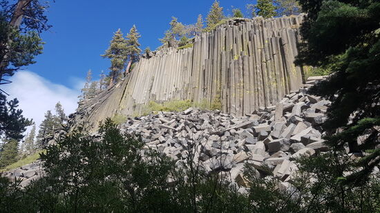 Nachmittags geht es zu dem National Monument "Devils Postpiles". Die Zufahrt auf einer sehr kurvenreichen und schmalen Straße ist schon ein Erlebnis für sich. Vom Parkplatz aus ist es dann nur 1 km bis zu den berühmten Basaltsäulen.