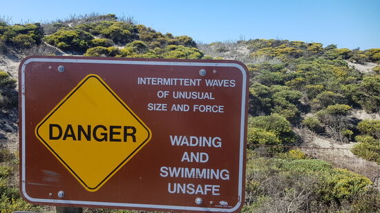 Am Nachmittag mache ich noch eine schöne Strandwanderung am Moss Landing State Beach, der an einem Wochentag fast leer ist. Zum Paddeln auf dem Meer sind mir hier die Wellen zu hoch und sehr ungleichmäßig (es gibt ein Warnschild dazu).