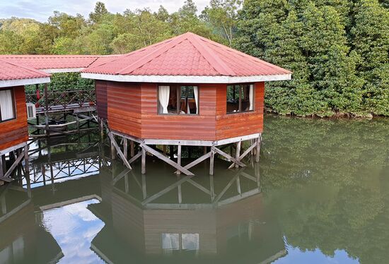 Wir bekommen einen Bungalow ganz am Ende mit traumhaftem Blick auf die Bucht.