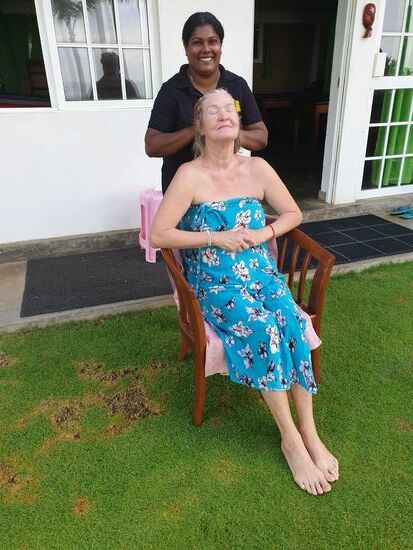Die letzten beiden Tage laufe ich mit Mütze auf dem Kopf herum, darf nicht ans Meer, keinen Luftzug haben und mir nicht die Haare waschen. Strenge Ayurvedaregeln, wenn man bestimmte Anwendungen bekommt, den Stirnguss z.B. und die Nasenreinigung.
