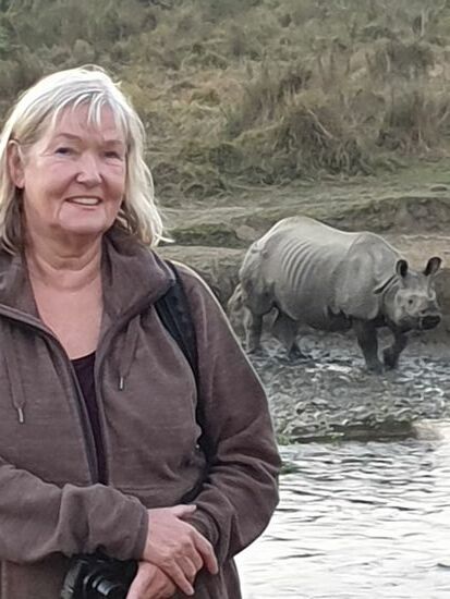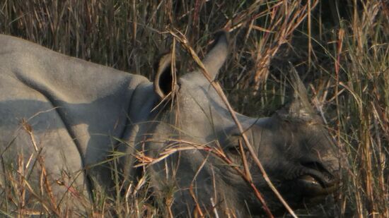 Dann ganz nah, direkt auf der anderen Flußseite: Ein Panzernashorn, gibt es nur hier und in Indien.
