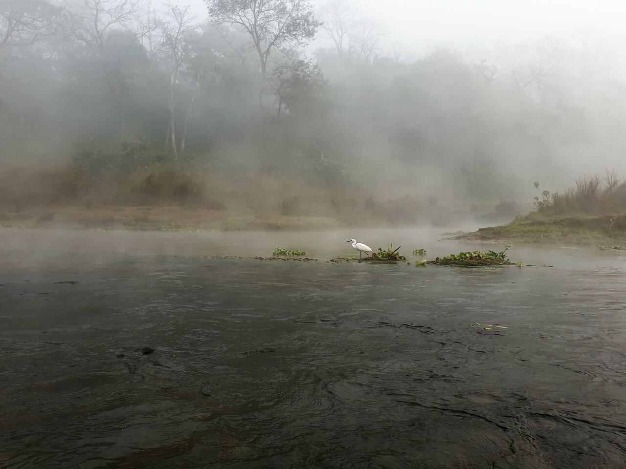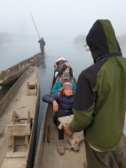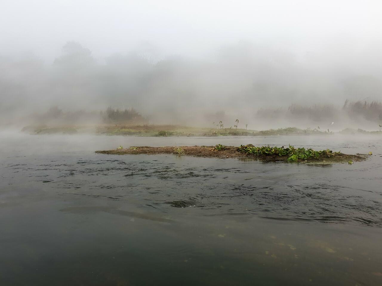 Es ist magisch. Der Nebel steigt über dem Wasser auf, es ist ganz still. Kein Motorgeräusch stört die Stille. Der Bootsführer stakt mit einem Stock durch das Wasser und wir treiben flußabwärts. Ich halte eine Hand ins Wasser und bin überrascht, wie warm es ist.
