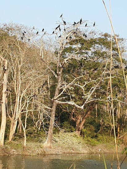 Wir sehen viele Arten von Vögeln, Reiher, Marabus, Kormorane.