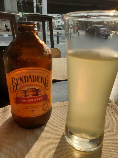 Da wir beide Bangkok mit seinen Sehenswürdigkeiten schon kennen, haben wir keinen Besichtigungsstreß, sondern schlendern mit Rosewein, leckerem Essen und Ingwer Bier.
