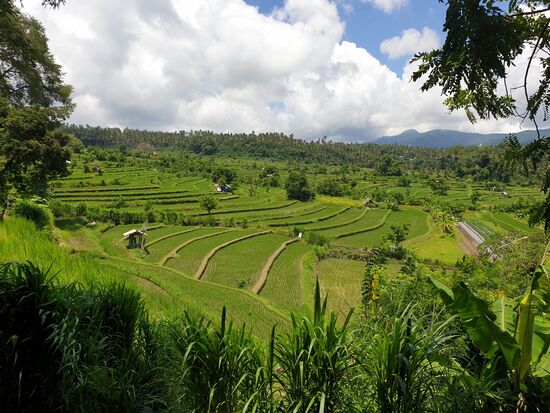 In der linken oberen Ecke sieht man sehr schön den Mount Agung.