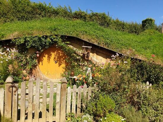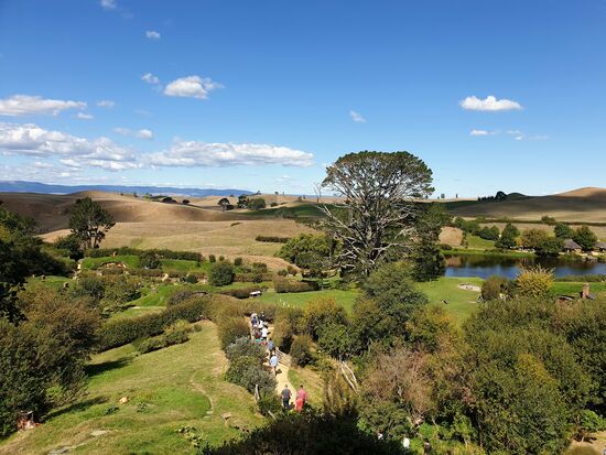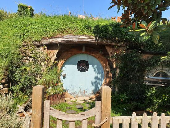 Ich halte in Matamata. Hier ist der Filmset zum Herrn der Ringe Film.