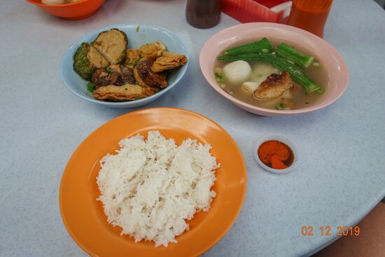 Die Chefin brachte mir wenig später dies an den Tisch. Ein Teil meiner Auswahl wurde zu meiner Überraschung zur Suppe, dazu noch Reis. Kann ich empfehlen!