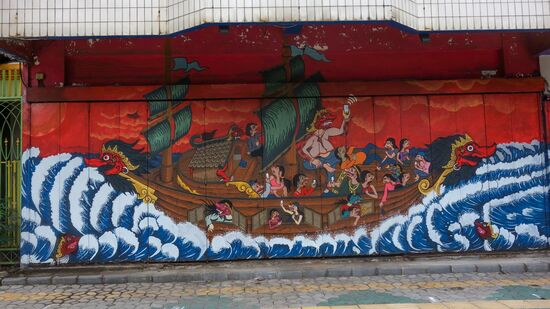 Eine ganze Straße voller Fassadenmalerei, das konnte ich schlecht ignorieren! Im Internet fand ich bei TheJakartaPost dazu einen Artikel, den ich versuche hier auszugsweise wiederzugeben: