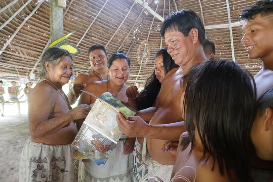 „Soy Liborio, Chefe de los Boras“, stellt sich der junge Mann gleich selber vor. Und dann setzt er seine Federkrone Peter auf: „Im Moment bist du der Chef.“