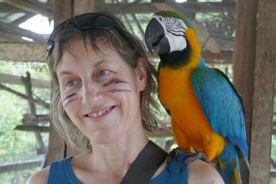 Andere Tiere sind weit weniger schwierig zu halten. Die schwarzen Agutis, die verschiedenen Äffchen, die farbigen Aras, hier Guacamayos genannt, oder die lange Boa. Es braucht ganz viel Überwindung, aber gemeinsam schaffen es Eveline und Rita ihre Angst vor dem Tier zu überwinden und der Wärter darf sie ihnen über die Schulter legen. Eveline ist ganz angespannt, stellt kurzfristig das Atmen ein, während Rita interessiert den Kopf der Schlange beobachtet. Sie haben es geschafft, eine gemeinsame Mutprobe bestanden.