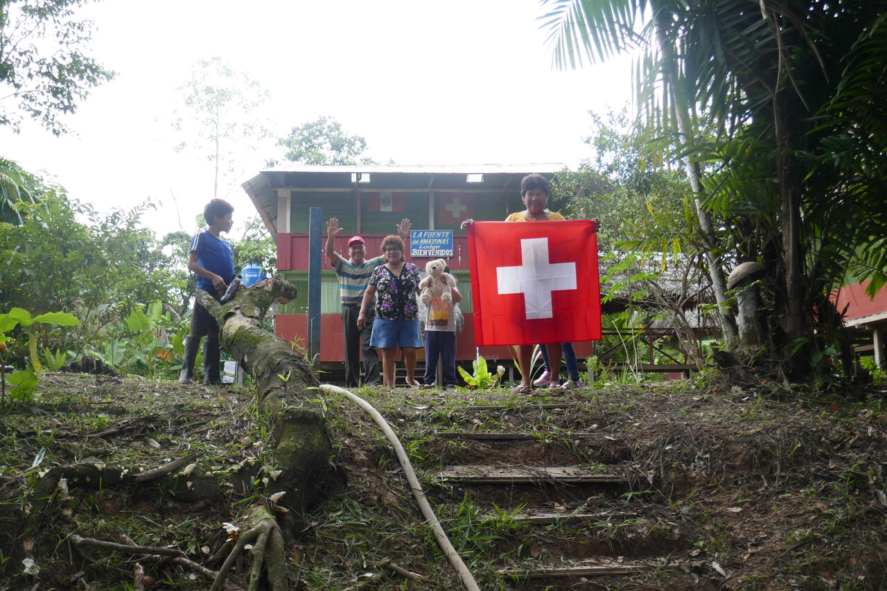 „Hola, Hooooolaaaa“ ruft es uns entgegen. Teresa schwenkt eine riesige Schweizerfahne. Pablo strahlt über das ganze Gesicht. „Bienvenidos en la Fuente, bienvenidos amigos.“ Die Freude ist riesengross und der Stolz ist in ihren Gesichtern zu lesen. Sie haben mich überrascht. Mit einer wieder aufgebauten Lodge. Zweistöckig sogar.