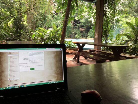 Flor hat natürlich keine Ahnung von Kälte. Wenn man hier lebt kommt man schon bei 20 Grad ins Frösteln. Hier sind die Temperaturen eigentlich meistens um 30 Grad, heute steigt das Thermometer aber deutlich höher Da ist es im Schatten hinter dem Pool grad auszuhalten.