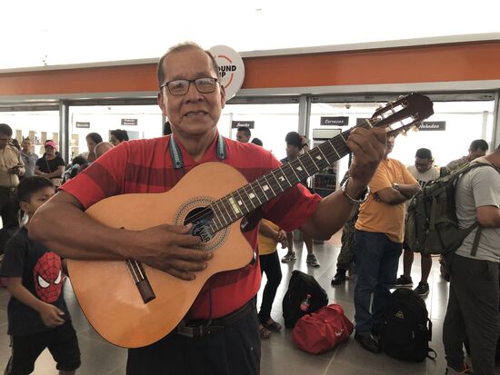 Pablo hat sogar die Gitarre mitgenommen. Eine ausgeliehene, mit der alten Gitarre von der Lodge traute er sich wohl nicht mehr unter die Leute. Und er lässt es sich nicht nehmen, mitten in all den Leuten für mich sein Willkommenslied, das er kurzerhand ein wenig umgetextet hat, zu spielen. Nur für mich allein.