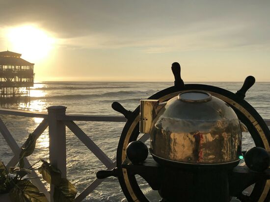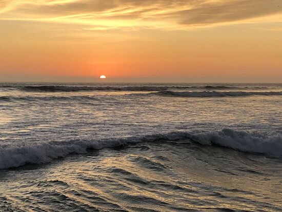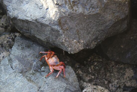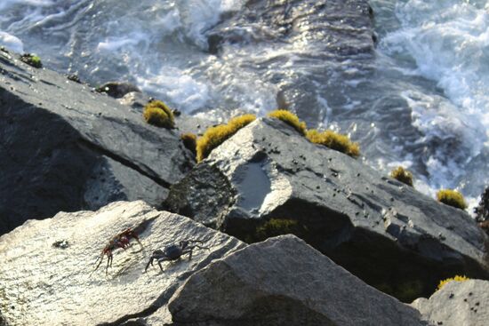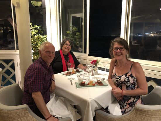 Und ob wir Glück haben! Es wird ein wunderbarer Abend. Die Sonne verabschiedet sich als goldene Kugel und die Wellen spiegeln das Licht wieder. Auf den Felsbrocken räckeln sich die Krebse im letzten Sonnenlicht und später geniessen wir ein fantastisches Menu mit Ausblick.