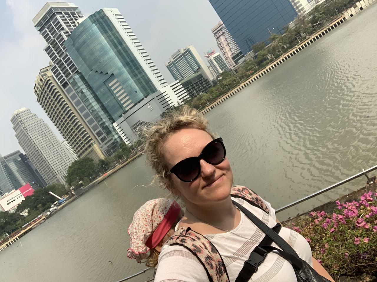 Heute war wieder zuerst Pool für die Damen (übrigens bin ich um ca. 3 Uhr eingeschlafen. Früher konnte ich das auch besser mit der Zeitumstellung!) u danach wollte doc mit uns den benjakitti-Park besuchen und von ihm zum Lumpini-Park laufen. Auf der Green-Mile. Green! Was ist eure Assoziation? Richtig! Meine auch. Wisst ihr, was sich dahinter verbirgt? Eine Fuß-und Radweg. Entlang einer Kloake. Und der Weg ist einfach.... Achtung... grün angemalt! Die sind so schlau! Mir ist fast das Gesicht eingeschlafen u ich habe jonna bei 32grad in der Trage Trepp-auf und -ab getragen ohne zu maulen. Bis. Ja. Bis er zugibt, dass er das wusste! Er dachte, es wäre eine tolle Idee und die Kinder hätten Auslauf. Muhahahaha. Irgendwie ist die Aufgabenteilung riskant: er plant die Tage u Ich schreibe den Blog! Und ihr wisst, doch tut alles fur eine gute Story!