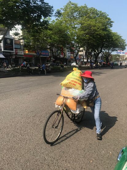 Vor allem die Frauen haben in Vietnam schwer zu tragen. Immer wieder konnten wir auf den Straßen diese Szenen beobachten.