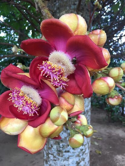 Die Pagode gilt als eine der schönsten in Vietnam. Auch uns gefällt die sehr gepflegte Anlage. Wir sehen zum ersten Mal Kanonenkugelbäume, die als heilige Pflanze gilt und ursprünglich aus Indien kommt. Die Früchte hängen wirklich wie Kanonenkugeln an den Bäumen und platzen im März/ April zu wunderschönen großen roten Blüten auf.