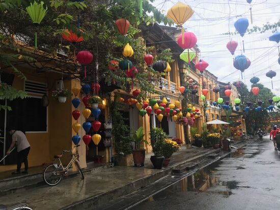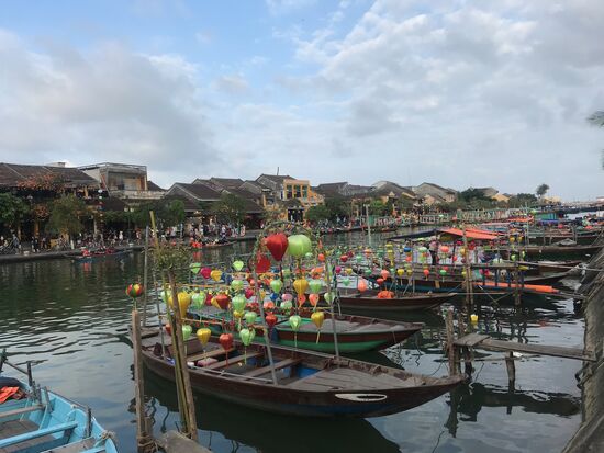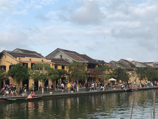 Kleine gemütliche Cafes und Restaurants laden zum Verweilen ein. Nach einer Bootsfahrt auf dem Thu Bon Fluss, führt uns der Weg zum lokalen Markt, wo nicht allein Gemüse, Fleisch, Fisch und Obst angeboten werden, sondern an kleinen Ständen für wenig Geld schmackhafte lokale Küche serviert wird. Uns gefällt die kleine Stadt HoiAn mit seinen vielen sauberen und hübschen Gassen am Tag ebenso wie am Abend, wenn in den Straßen und am Fluss die bunten Papierlaternen leuchten und die gesamte Innenstadt in ein farbenprächtiges Lichtermeer verwandeln.