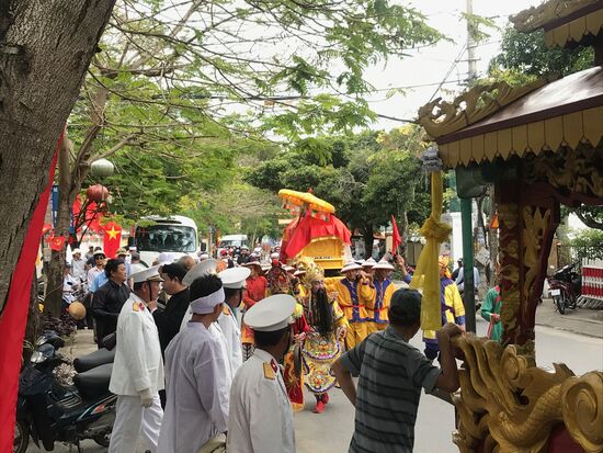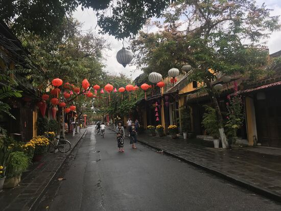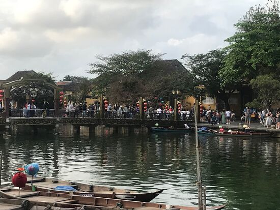 HoiAn war im 16./ 17 Jahrhundert das Handelszentrum Vietnams. Im Hafen von der Stadt liefen große Schiffe mit Handelsreisenden aus aller Welt ein. Portugiesen ebenso wie Japaner, Chinesen und Koreaner haben hier Handel getrieben und ihre Geschäfte aufgebaut. Heute zeugen allein die Häuser, Tempel und Pagoden von der einstigen Geschäftigkeit in der Stadt. Der Hafen ist verschlammt; heute übernimmt DaNang die Rolle des internationalen Handels und Austausch. HoiAn ist mit seinen vielen kleinen historischen Gassen und Häusern 1999 zum UNESCO Weltkulturerbe eingestuft wurden. Über 1000 Stätten stehen unter Denkmalschutz. Das japanische Viertel mit seinen zahlreichen gut erhaltenen einstöckigen Holzhäusern, in denen heute Händler hochwertige Textilien aus lokal produzierter Seide, Produkte lokalen Keramik- oder Stickereihandwerks anbieten, laden zum Bummeln und Verweilen ein. In dem Gebiet sind Mopeds verboten, allein Fahrradfahren ist erlaubt. Damit kann sich der Besucher ungehindert der gut erhaltenen Architektur und dem Treiben auf der Straße widmen. Über die japanische Holzbrücke aus dem 17. Jahrhundert, die eigens für den Hochwasserschutz gebaut wurde, gelangen wir in das lebendige chinesische Viertel. Während die einstigen japanischen Bewohner alle aus Vietnam nach Beginn des 2. Weltkrieges weggezogen sind, leben chinesische Bürger seit Generationen weiterhin in der Stadt. Sie pflegen in den alten Tempeln und Hofhäusern ihre Kultur. Wir besuchen das Wohnhaus einer chinesischen Familie seit acht Generationen. Der Großvater, 85 Jahre alt, erzählt mir in Chinesisch, dass die Familie ursprünglich aus Fujian stammt. Seine Kinder und Enkel bereiteten für das Laternenfest, dem letzten Tag des chinesischen/ vietnamesischen Frühlingsfestes Jiaozi vor.
