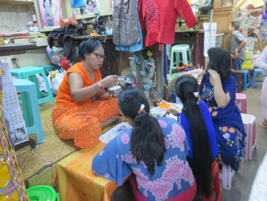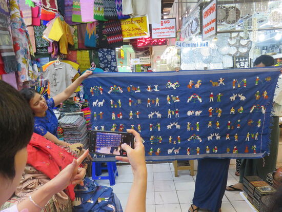 Wir fahren zunächst zum größten und bekanntesten Markt der Stadt, dem Bogyoke Aung San Market. Das Gebäude stammt noch aus der alten Kolonialzeit, in den schmalen Gängen erhält der Käufer alles, was das Herz begehrt. Wir bewundern das reichhaltige Angebot von Gemüse und Obst sowie Unmengen bunter Stoffe für die traditionellen Wickelröcke (longyi), die auch die Männer mehrheitlich tragen.