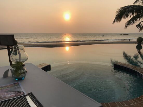 Zum Abschluss unserer Rundreise nehmen wir eine Auszeit am Meer im Amazing Ngapali Resort am Ngapali Beach. Ca. eine Stunde Flug von Bagan, im Staat Rakhine gelegen, treffen wir am späten Vormittag ein und werden vom Hotelpersonal mit einem offenen Wagen abgeholt. Wir werden freundlich im Hotelgebäude empfangen. Die nächsten Tage sind wir nun in einer sauber und geschmackvoll gestalteten Anlage mit hohen Palmen, Blumenrabatten und gepflegtem Rasen untergebracht.. Kleine Bungalows in traditioneller Holzarchitektur und ein Hauptgebäude mit offenem Blick auf das Meer machen das Resort zu einem Erlebnis. Die Tische, entlang des Pools angeordnet, bieten einen traumhaften Blick auf das Meer. Vor allem Abend genießen wir den ungehinderten Anblick auf den Sonnenuntergang.