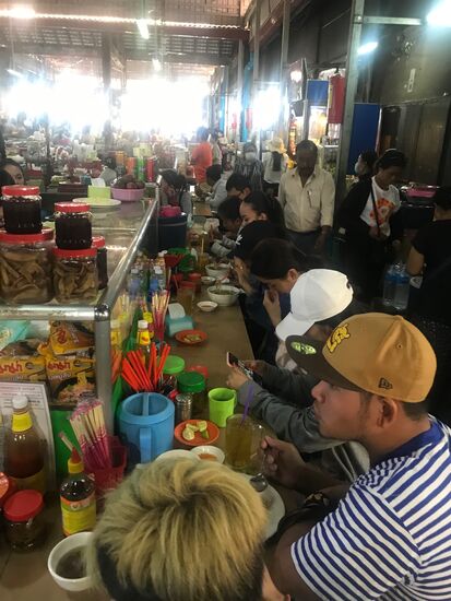 Wohlwissend, dass Siem Reap um die Pub Street herum nicht das wahrhafte Kambodscha ist, genießen wir am ersten Tag alle Annehmlichkeiten dieser ausgebauten und gut entwickelten Tourismusinfrastruktur. Wir lassen es uns gutgehen bei schmackhafter lokaler Küche mit eisgekühlten und frisch gepressten Säften, genießen Massage und Swimming Pool. Wir verzichten ganz auf die Landeswährung und bezahlen alles in US Dollar. Die Preise sind ohnehin in Dollar ausgewiesen, allein auf dem Markt verlangen die Frauen die einheimischen Real. Aber auch sie wissen mit den Dollar umzugehen.