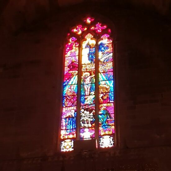 Durch bunte Kirchenfenster scheint die Januar-Sonne und lässt sie Kathedrale innen ganz weich und schön erstrahlen.