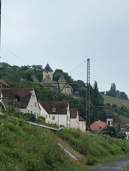 Los geht’s in Schweinfurt. Bei trockenem Wetter schön am Main entlang, durch ein paar Umwege wird es noch interessanter, eine ganze Zeit spielt das Wetter auch mit. Das Tröpfeln wird aber immer stärker, so dass ich meinen Plan, mal längere Pausen einzulegen aufgebe und einfach weiterfahre.