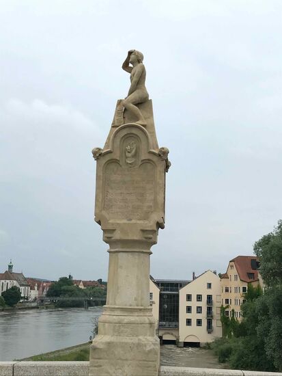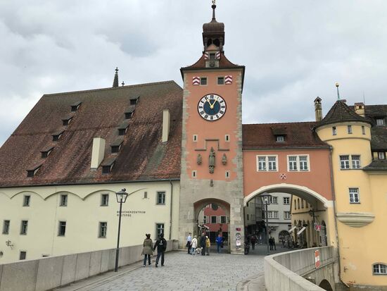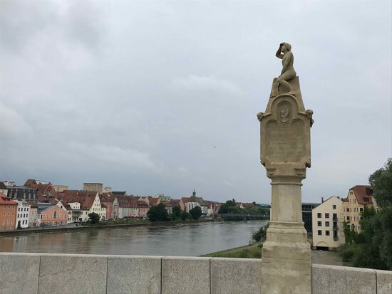 Nach der Fahrt ist das Wetter auf jeden Fall besser und ich beginne m einen kleinen Rundgang. Nach einem Blick in den Dom geht es zur steinernen Brücke, eines der Wahrzeichen der Stadt. Unterhalb der Brücke befindet sich eine historische Wurstlküche, da es aber noch relativ früh ist, gehe ich daran vorbei.