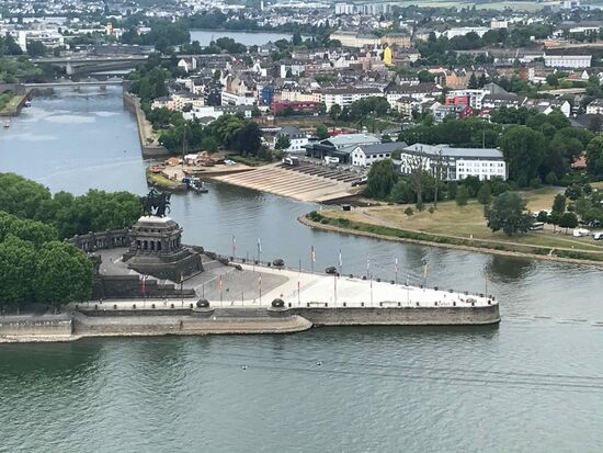 In Koblenz besichtige ich erst mal das Deutsche Eck, bevor es zur Festung Ehrenbreitstein raufgeht. Hier ist meine erste Übernachtung geplant, nach geschätzten 40 Jahren mal wieder in einer Jugendherberge. Und dann gleich in einer Festung. Da kann ja nichts mehr passieren. Die Ausstattung ist sehr gut und freundliche Leute dort.