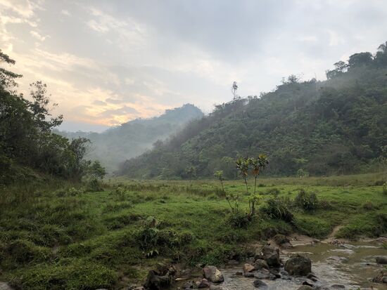 Die schwüle Mittagsluft tritt mir entgegen als ich mitten auf der Strecke aus dem Bus trete. Ich bin also angekommen, am Ende der Welt, so scheint es mir. Es hat mich einige Überzeugungskraft gekostet den Busfahrer zum Halten an dieser Stelle zu bringen, hoffentlich ist das kein schlechtes Omen. Ich ziehe die Wanderschuhe an und mache mich also auf den Weg. Eigentlich hatte ich vereinbart bei der Familie anzurufen sobald ich angekommen bin, doch hier im Nirgendwo habe ich keinen Empfang. Also probiere ich alleine mein Glück und frage mich bei den spärlich vorhandenen Gehöften durch. Bald schon kommt mir Emanuel der Gastvater entgegen und so stapfen wir gemeinsam zur Unterkunft. Eine wirkliche Konversation kommt nicht zustande, dafür ist unsere gemeinsame Schnittmenge an Spanisch- und Englischkenntnissen zu gering, doch verstehen wir uns direkt – wir sprechen die gleiche Sprache – die Sprache des Seins. Von einer kleinen Anhöhe erhasche ich einen Blick auf die Farm. Inmitten dieses Naturidylls werde ich nun abseits allen Großstadttrubels für fast zwei Wochen in eine andere Welt eintauchen. Schnell merke ich, dass hier andere Dinge von Bedeutung sind und ein anderer Lebensrhythmus schlägt. Zeit, wie sie die meisten Menschen kennen existiert an diesem Ort nicht. Das umliegende Panorama ist die Summe aus bewaldeten Berghängen, einem kristallklaren Himmel und den hoch am Himmel kreisenden Aguilas. Es ist als sei dies ein in sich geschlossenes Universum.