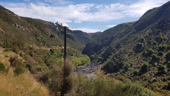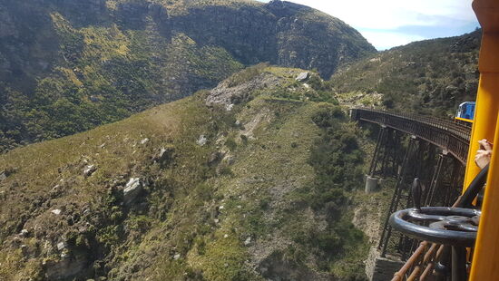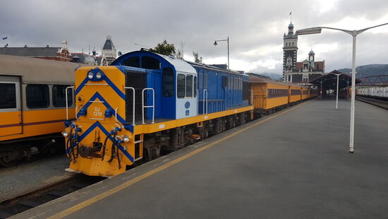 An meinem letzten Tag in Dunedin ist sehr stürmisches Wetter angesagt. Das macht nichts, denn ich möchte mal einen Ausflug mit der Bahn in die Schlucht des Taieri Flusses machen. Die "Taieri Gorge Railway" ist eine von zwei touristischen Bahnlinien ab Dunedin. Ich fahre ziemlich früh los, muss mich dann aber doch beeilen, weil es am Bahnhof keine Parkplätze mehr gibt. Ich muss eine Viertelstunde entfernt parken, wenigstens für nur $3 am Tag. Die Bahn erreicht nach 116 km den kleinen Ort Pukerangi. Am frühen Nachmittag sind wir wieder zurück in Dunedin.